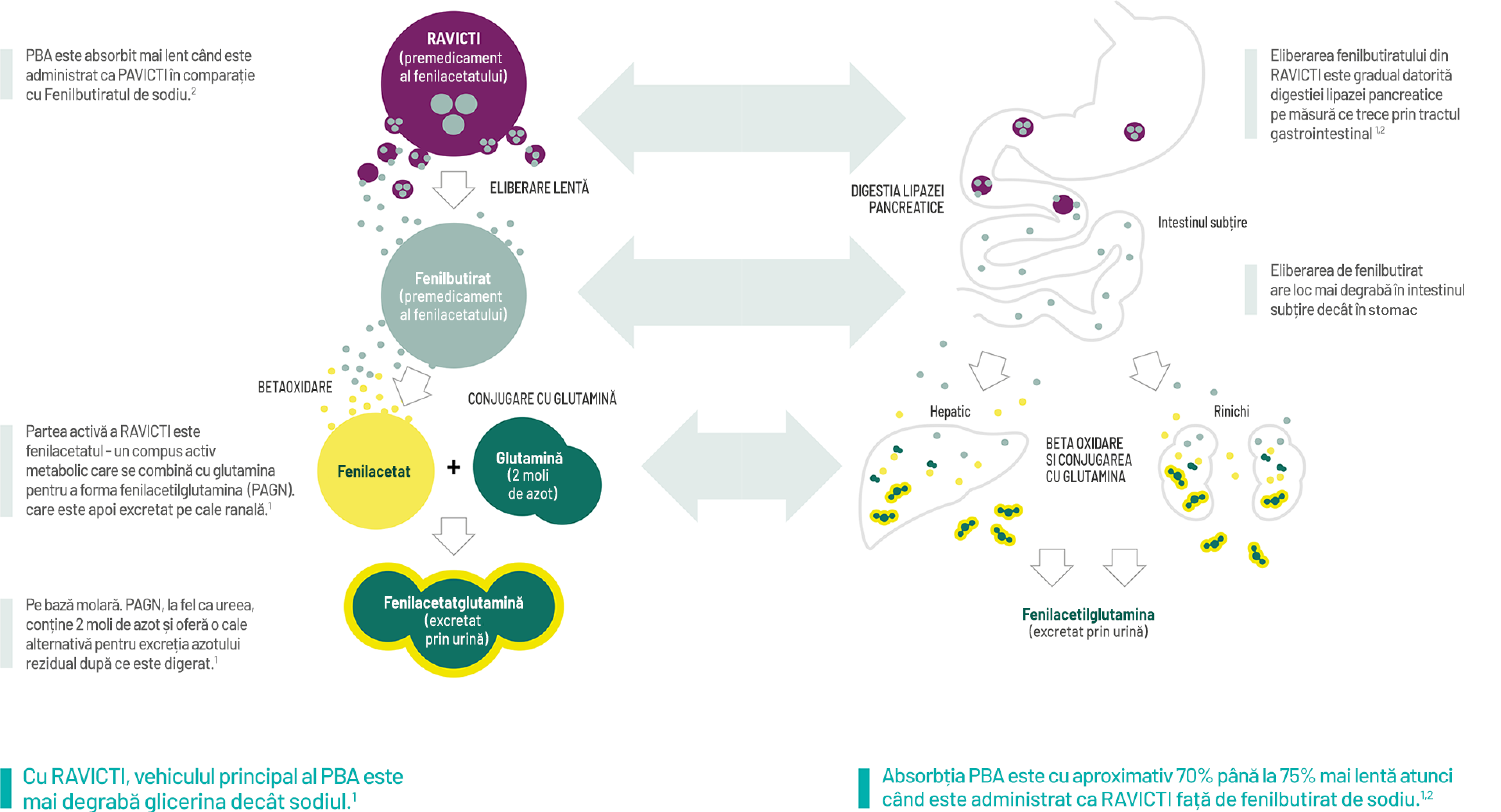 Referințe: 1. Rezumatul Caracteristicilor Produsului RAVICTI. 2. Monteleone JPR et al. Jurnalul de Farmacologie Clinică 2013;53:699-710.
